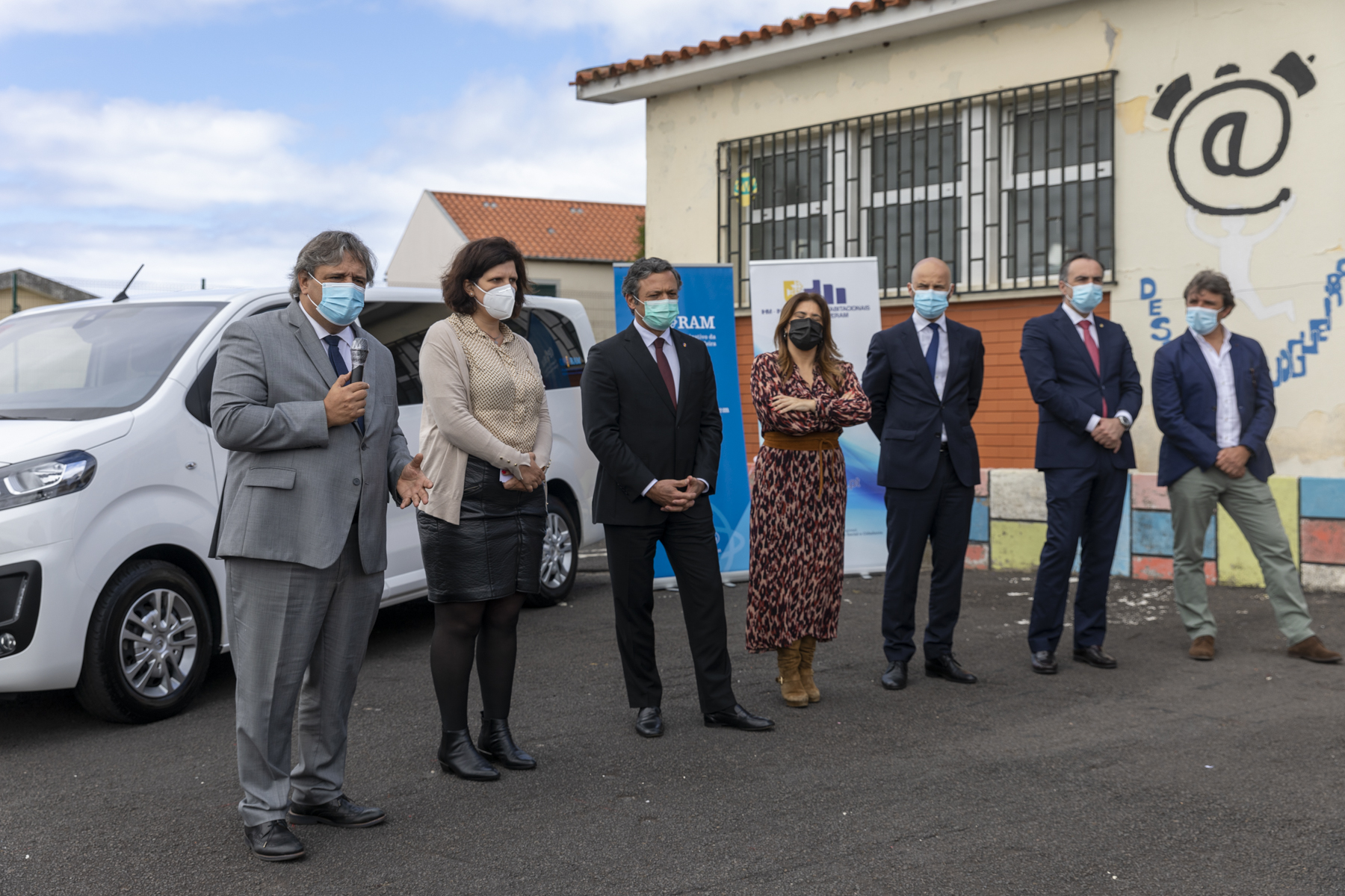 Entrega da carrinha de 9 lugares pelo vice-presidente do Governo Regional, Pedro Calado, ao Projeto educativo e sociocomunitário “Renascer@Nogueira”, que tem como principal objetivo promover respostas de inclusão social e participação cívica, destinadas a crianças e jovens residentes daquele bairro social, através da dinamização de atividades que visem contribuir para a reinserção escolar e profissional e que fomentem o desenvolvimento de hábitos de vida saudáveis.